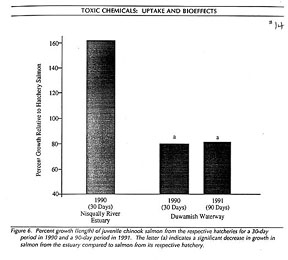 Cassillas, E., M.A. Arkoosh, E. Clemons, T. Hom, D. Misitano, T.K. Collier, J.E. Stein and U. Varanasi. 1995. Chemical contaminant exposure and physiological effects in outmigrant juvenile chinook salmon from urban estuaries of Puget Sound. 657-677 In Volume 2, Puget Sound Research '95 Proceedings, Puget Sound Water Quality Authority, Olympia.