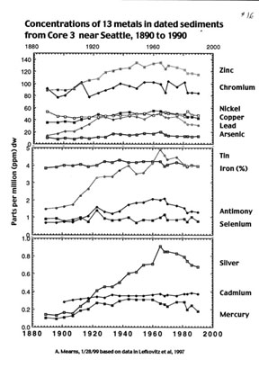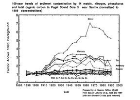 Crecilius, E.A., V.I. Cullinan, L.F. Lefkovitz and C. Peden. 1995. Historical trends in the accumulation of chemicals in Puget Sound. 825-831 In Volume 2, Puget Sound Research '95 Proceedings, Puget Sound Water Quality Authority, Olympia.